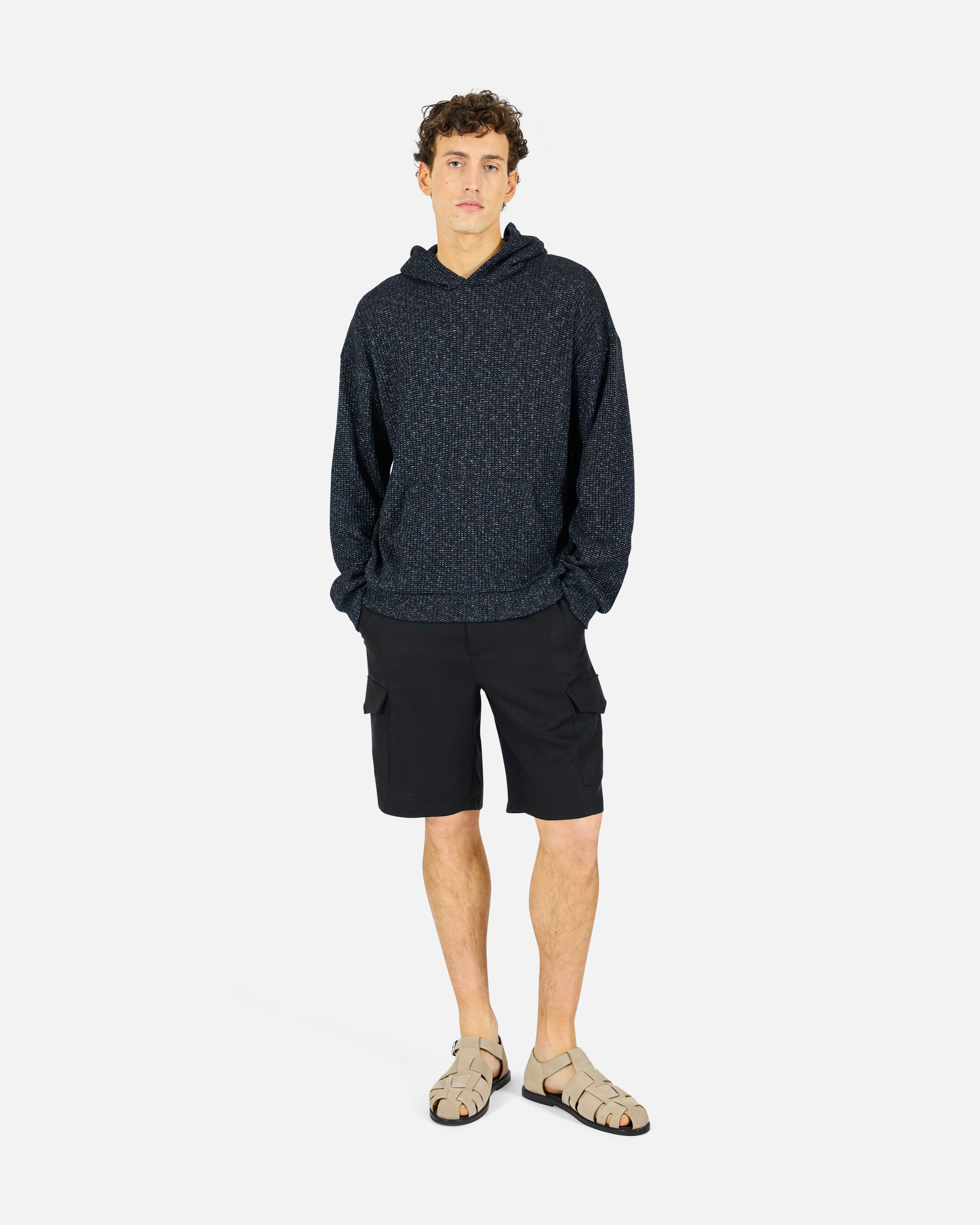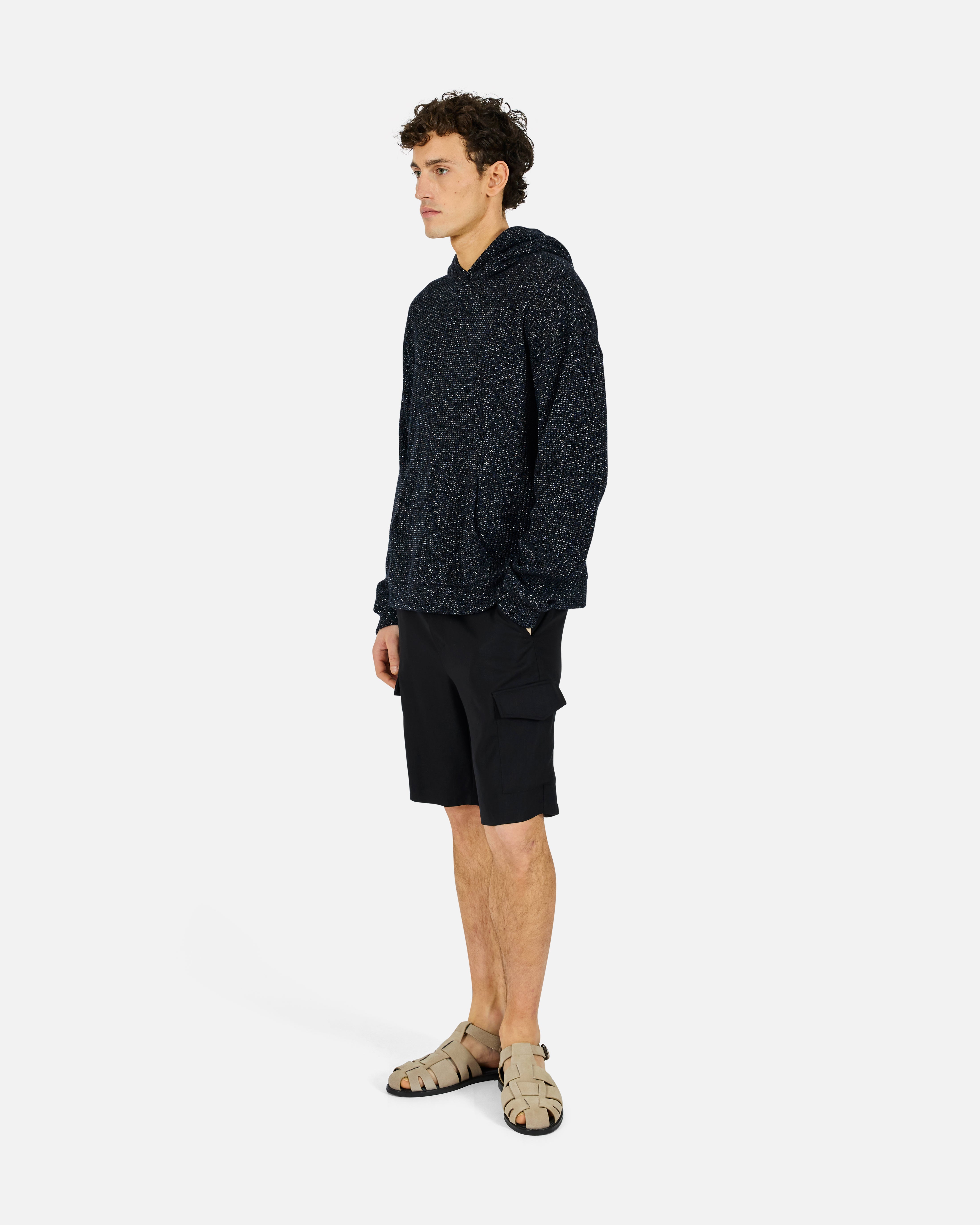Tailored cargo short with slanted pockets, cargo pockets, welt pockets at the back, and a clean button-and-zip closure. Made in 100% Tencel for a fluid drape.