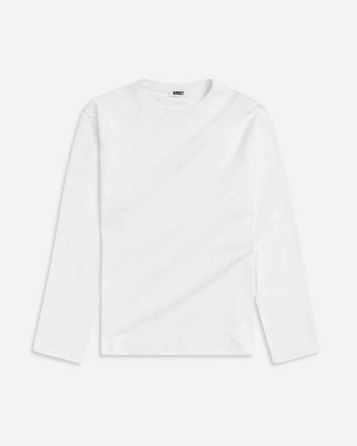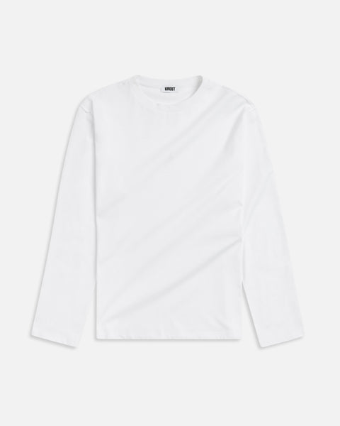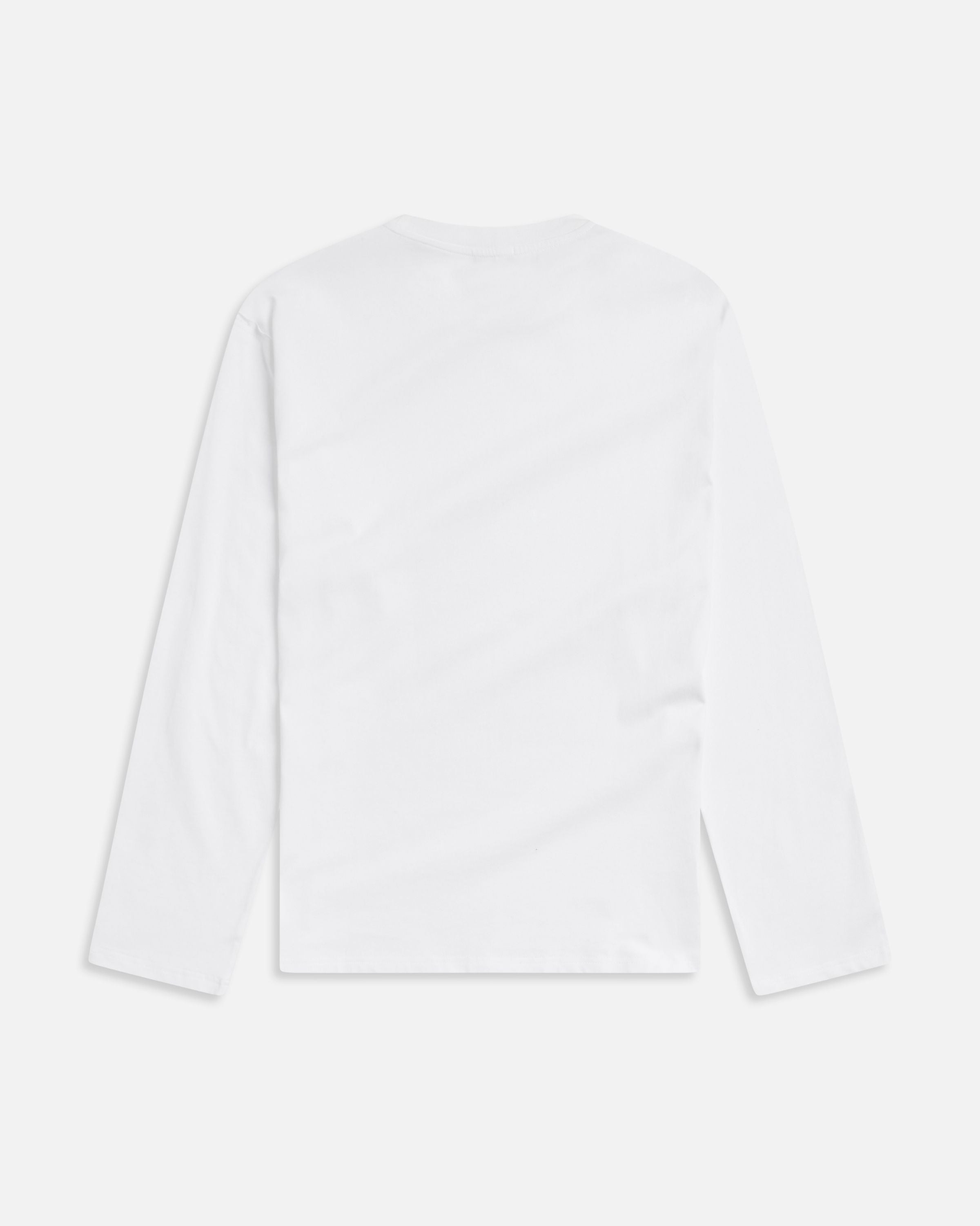 A fresh twist on an everyday staple, the Reverse Seam Long Sleeve in white features raw seam detailing at the armholes and a tonal stitched logo at the chest. Crafted from soft, mid-weight cotton with a relaxed fit and clean straight hem.