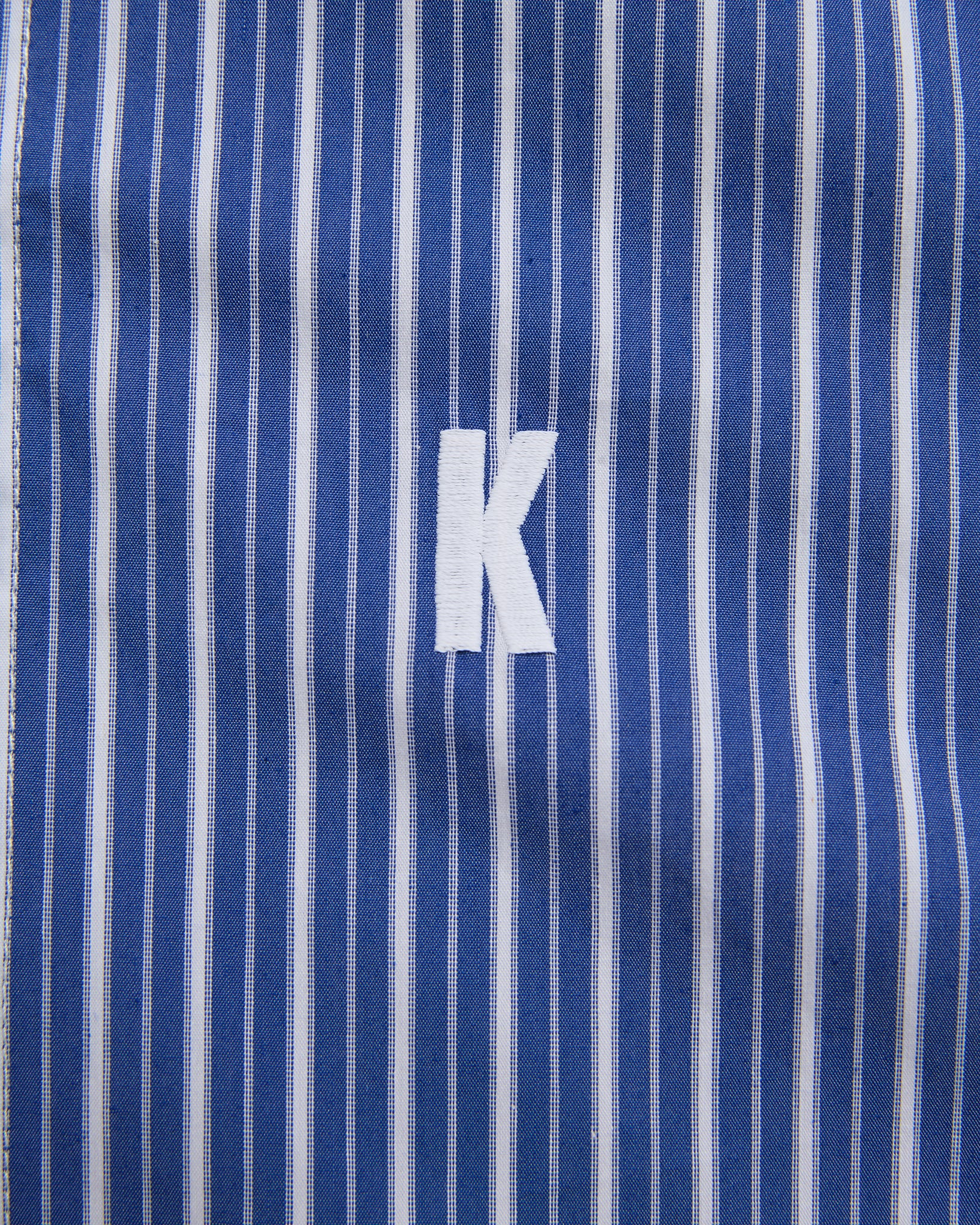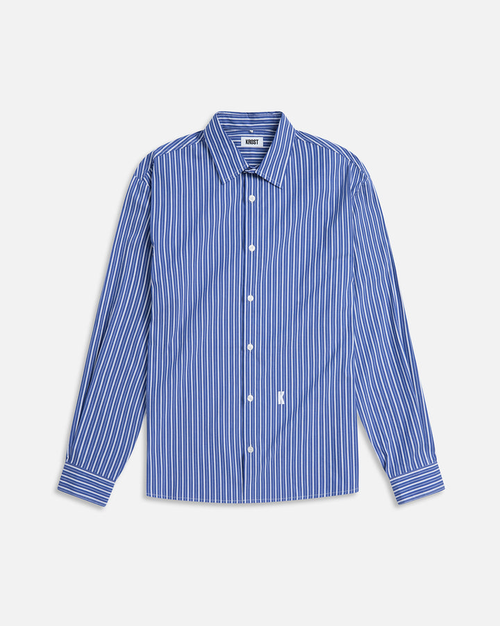 Designed in a vibrant Strong Blue, the Bold Striped Shirt brings a punch of color to a classic button-up silhouette. Made from a stretch cotton blend, it features a pointed collar, buttoned cuffs, and logo embroidery.