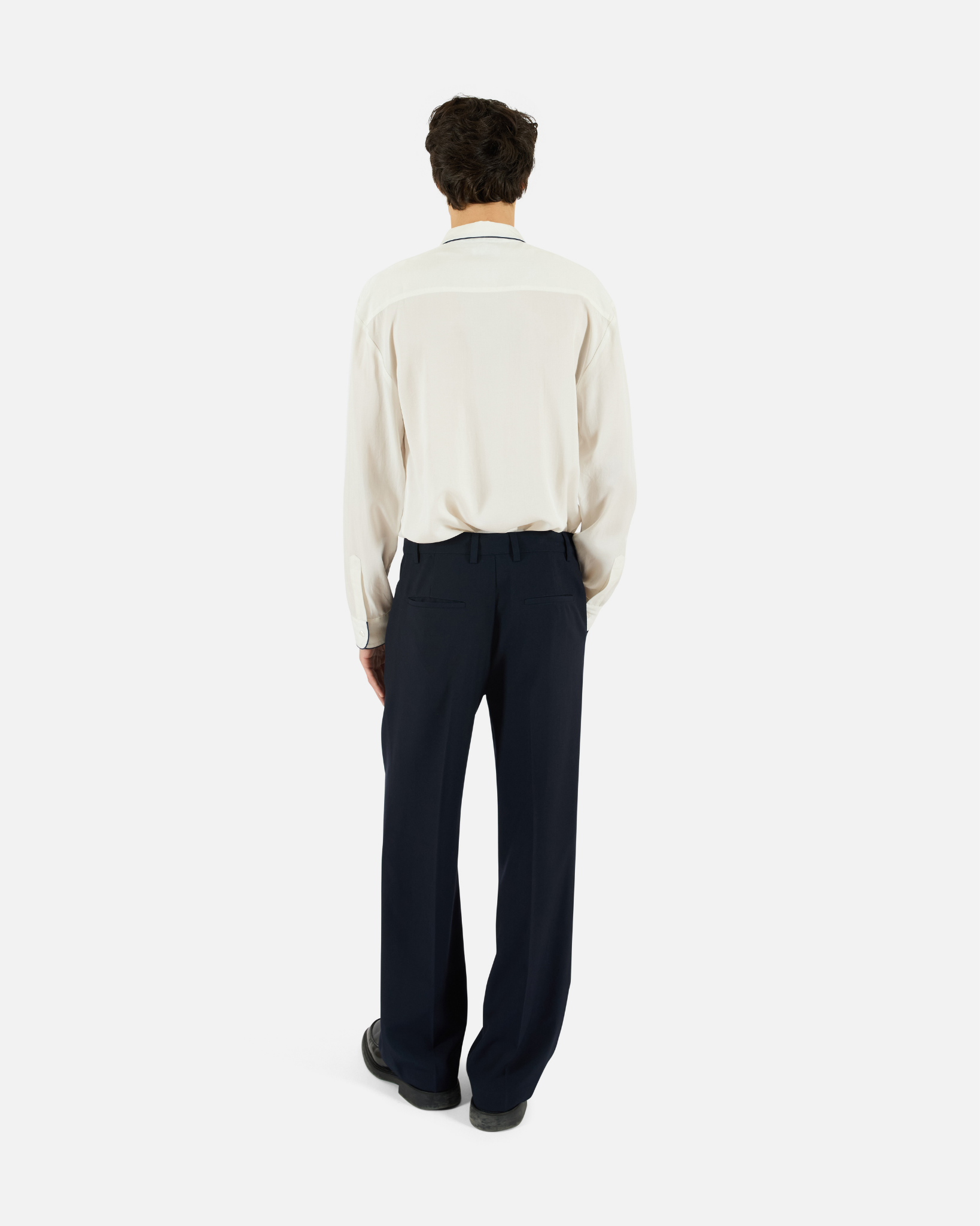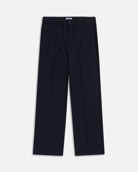 Standard trouser in a recycled blend with gentle stretch. Features a nylon drawcord with rubber dipped aglets, slanted pockets, and tailored welt pockets at the back for a clean, elevated feel.