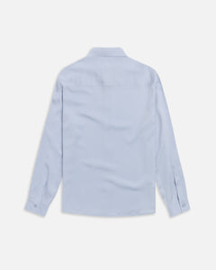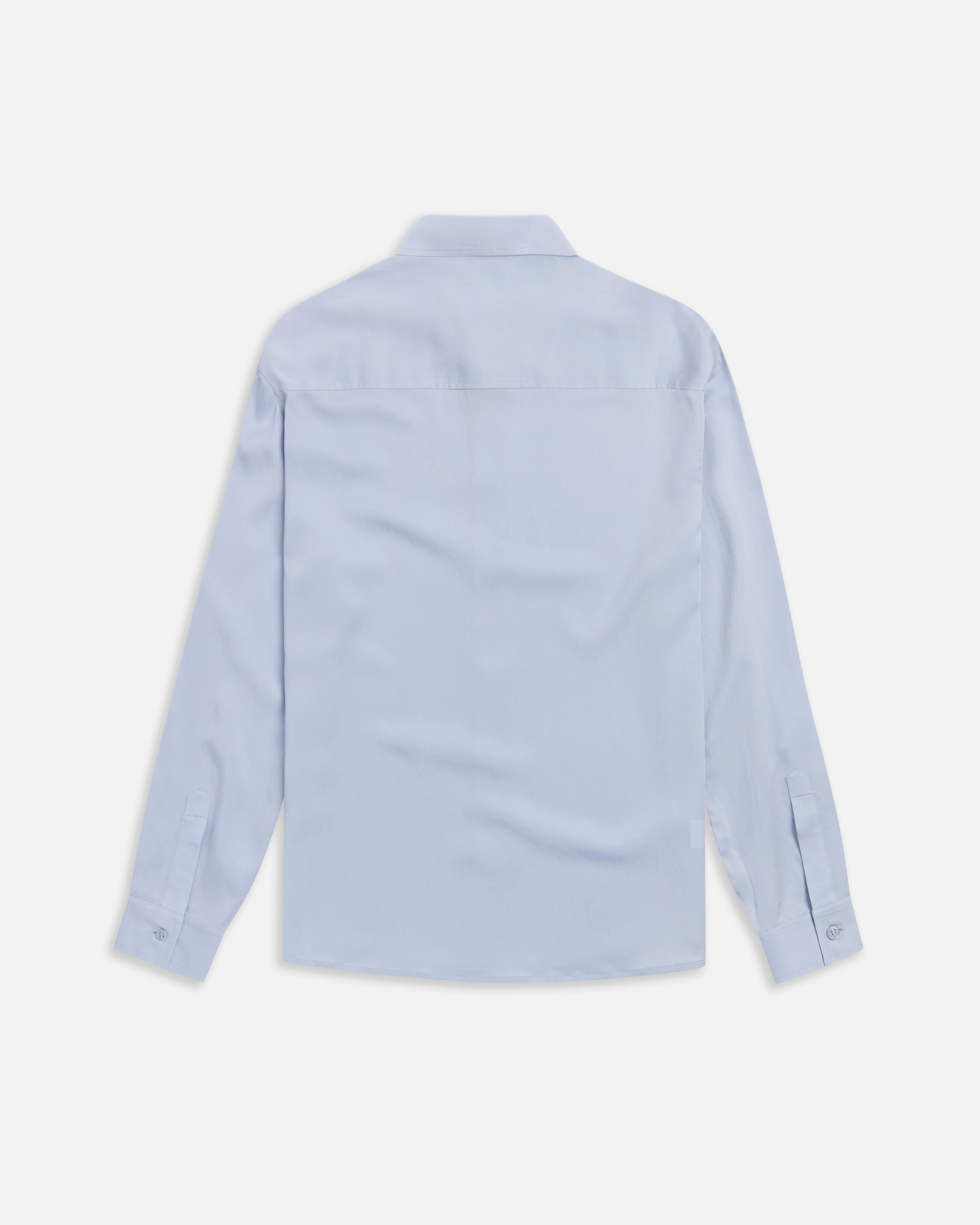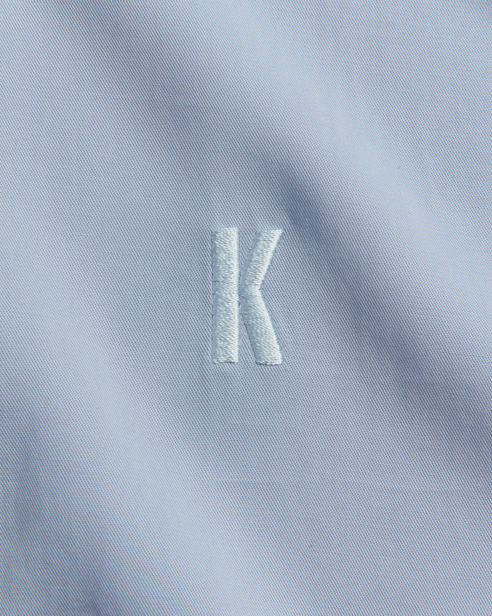 Smooth Tencel shirt with a pointed collar, curved hem, and clean silhouette. Subtle embroidered K at the front adds a quiet branded detail.
