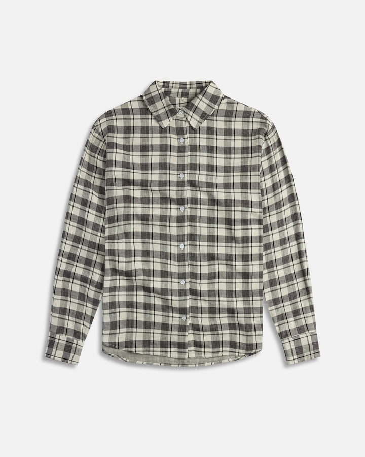 The Kenmare Flannel Shirt in plaid is made from double-faced cotton flannel with a soft, brushed texture. Designed with a pointed collar, button front closure, and curved hem, it’s an easy everyday layer. Finished with buttoned cuffs and a back yoke detail for a clean fit.