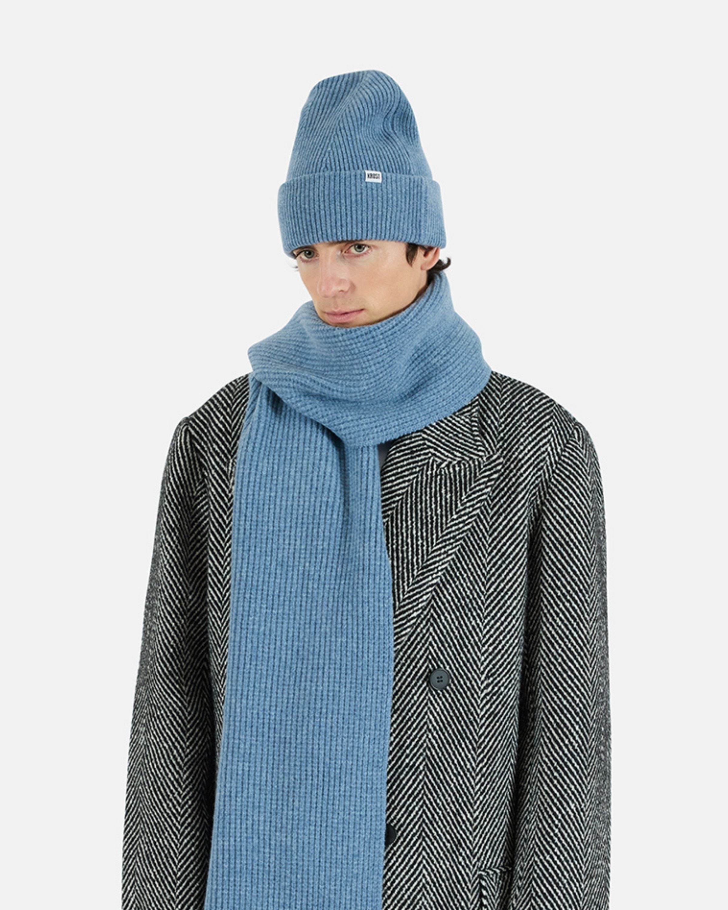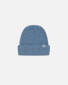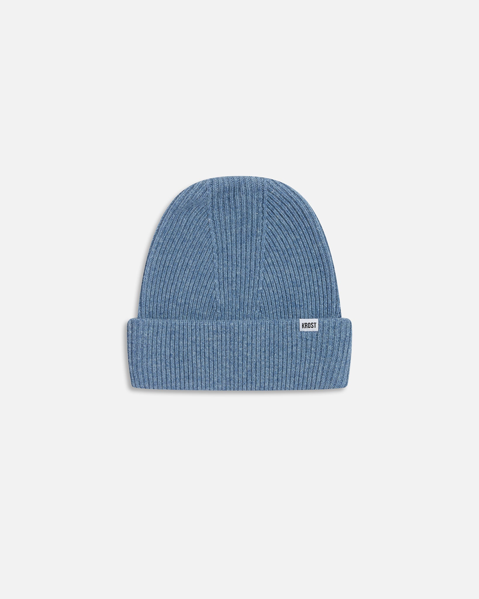 The Speckle Beanie in Cashmere Blue is made from heavyweight wool with a rib knit construction and snug fit. Designed with a classic cuffed silhouette and finished with a KROST flag label at the fold.