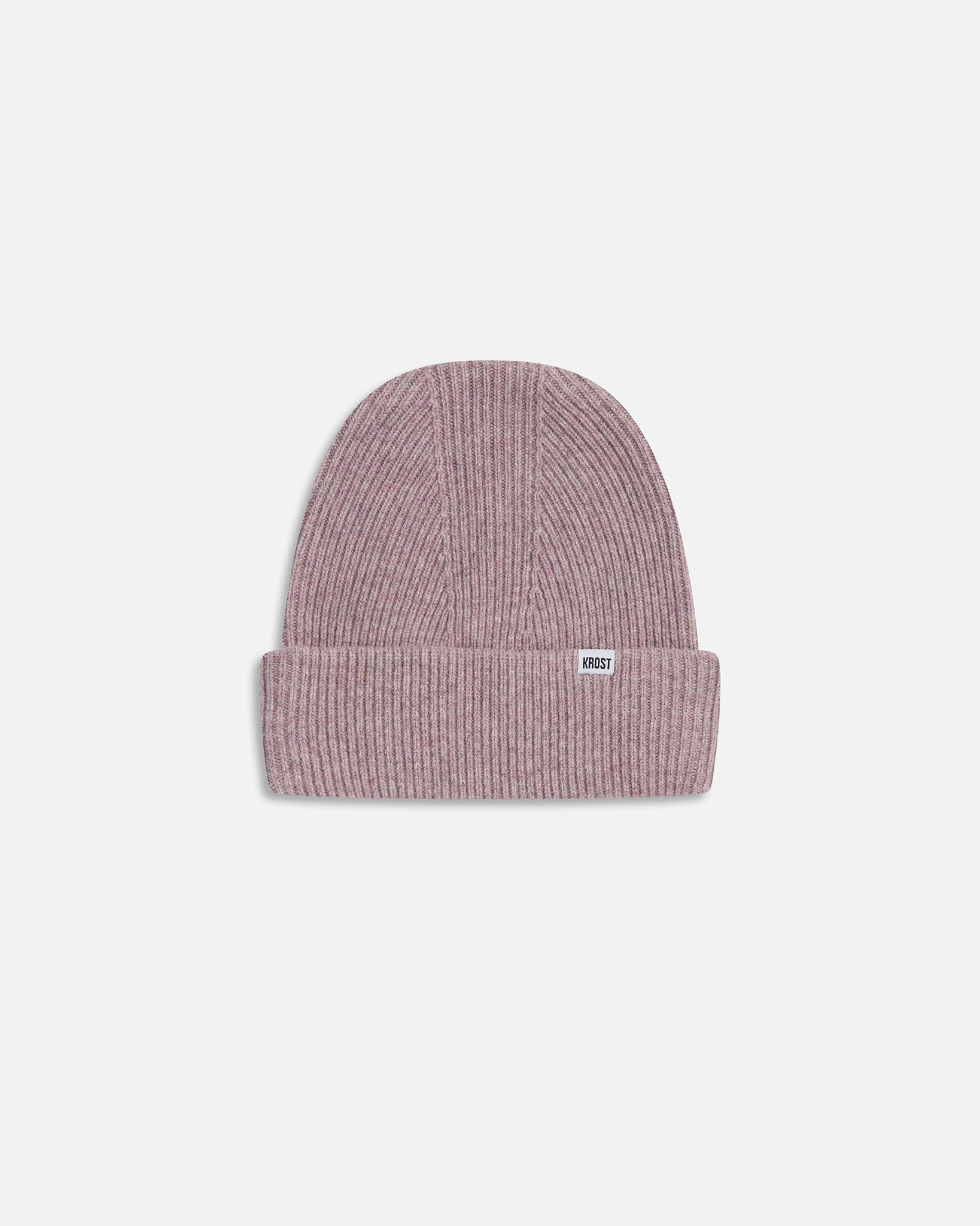 The Speckle Beanie in Mauve is made from heavyweight wool with a rib knit construction and snug fit. Designed with a classic cuffed silhouette and finished with a KROST flag label at the fold.