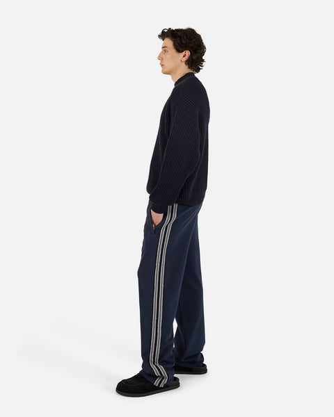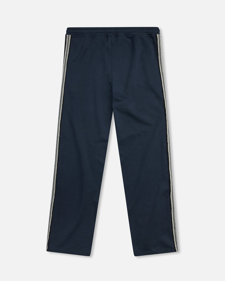 The Terry Jacquard Panel Pant is a relaxed essential. Crafted from midweight cotton terry, it features a contrast striped knit fabric at the outseams. Designed with a wide-leg silhouette and elastic waistband with adjustable drawcord. The pant offers elevated comfort, finished with welt zip pockets at the front for added security.