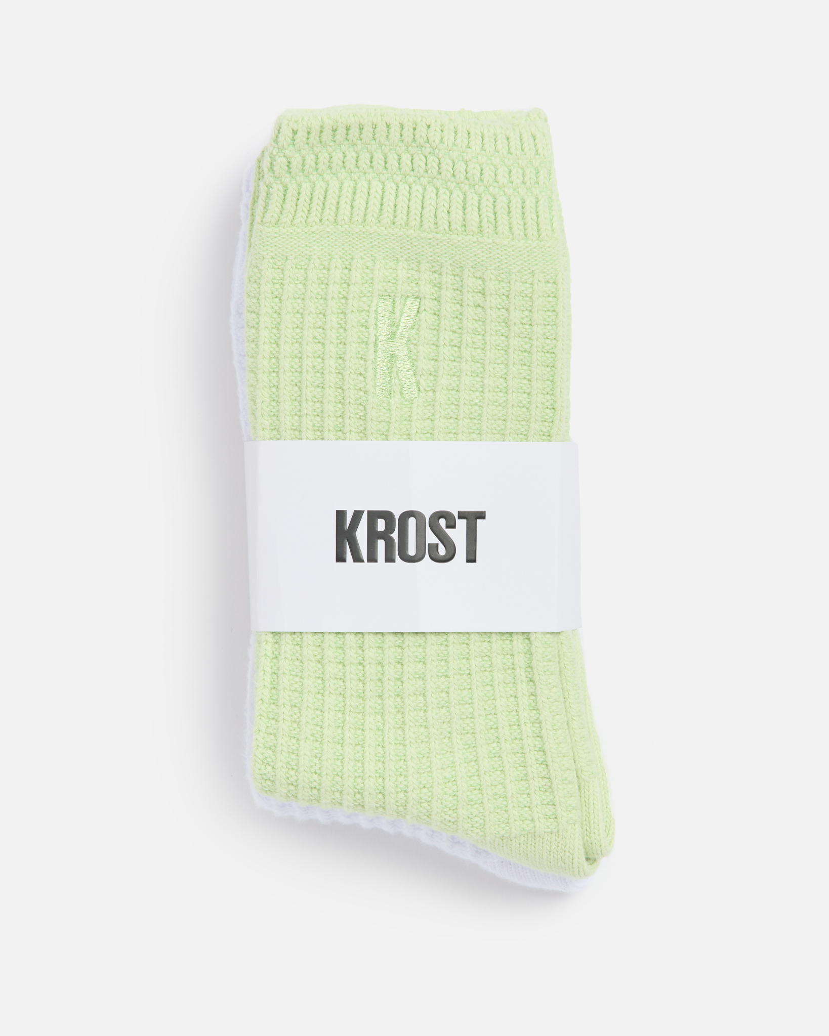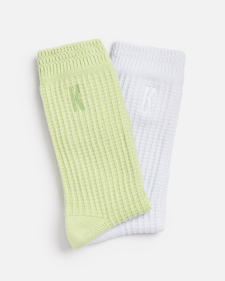 Soft, crew-length socks crafted from a lightweight waffle-knit cotton. Designed with a ribbed cuff for a secure fit and a vinyl krost logo at the outer sole. Finished in a breathable, textured knit and sold as a multi-color two-pack for everyday wear.