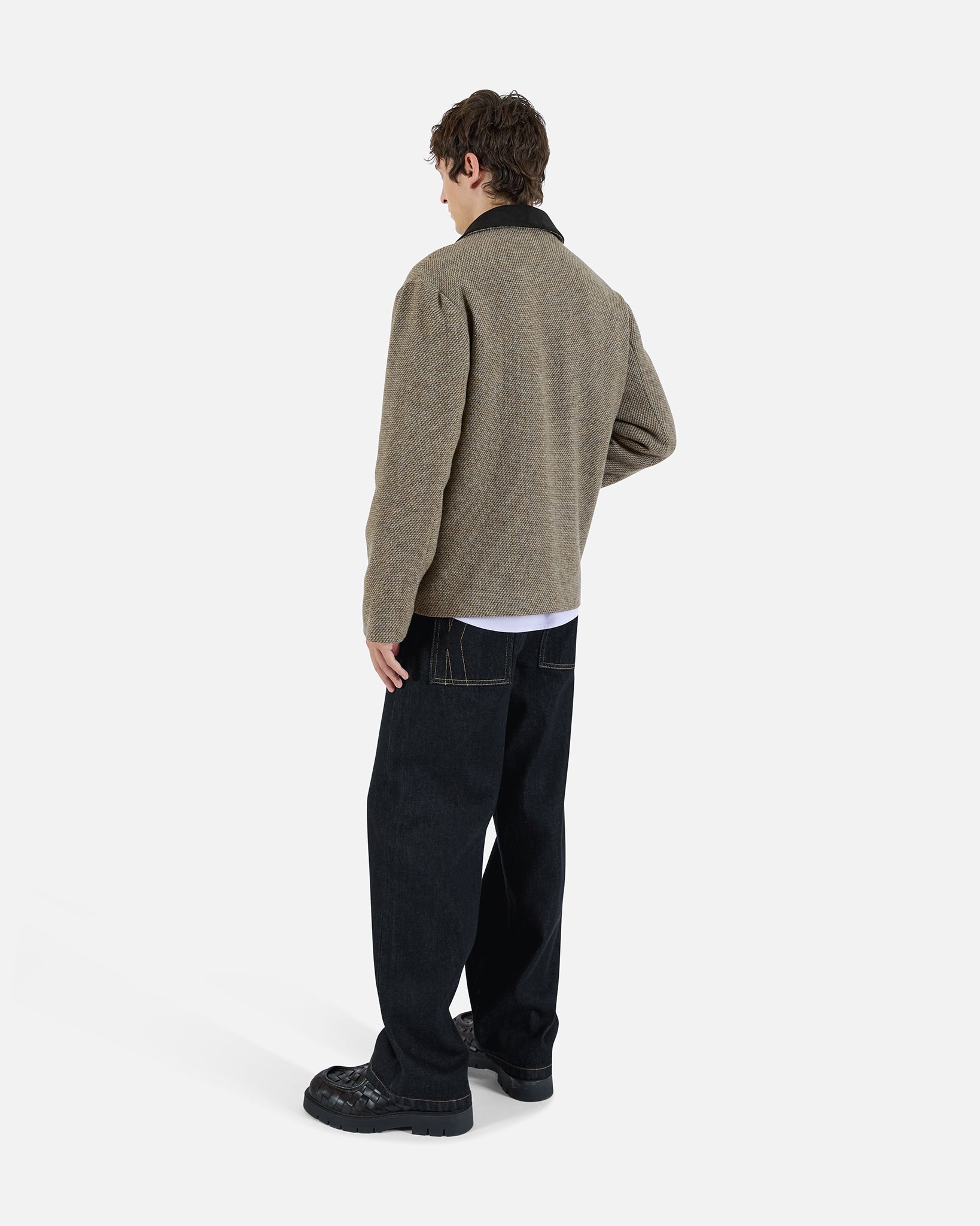 The Wool Combo Coat pairs classic structure with modern fabrication. It features a pointed collar in contrasting faux suede, a front zip closure, and slanted welt pockets. Fully lined for comfort and insulation, this coat stands out with subtle contrasts while remaining practical and sleek.